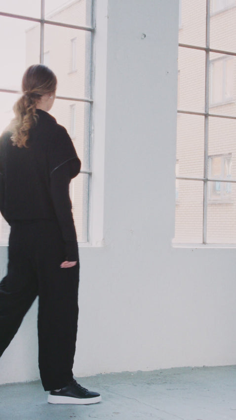 The NAYA pull up tapered trousers are perfectly engineered for the season ahead. The fabric boasts a self coloured print replicating a small wave from waistband to hem. This genius addition brings both texture and interest to a very versatile piece.